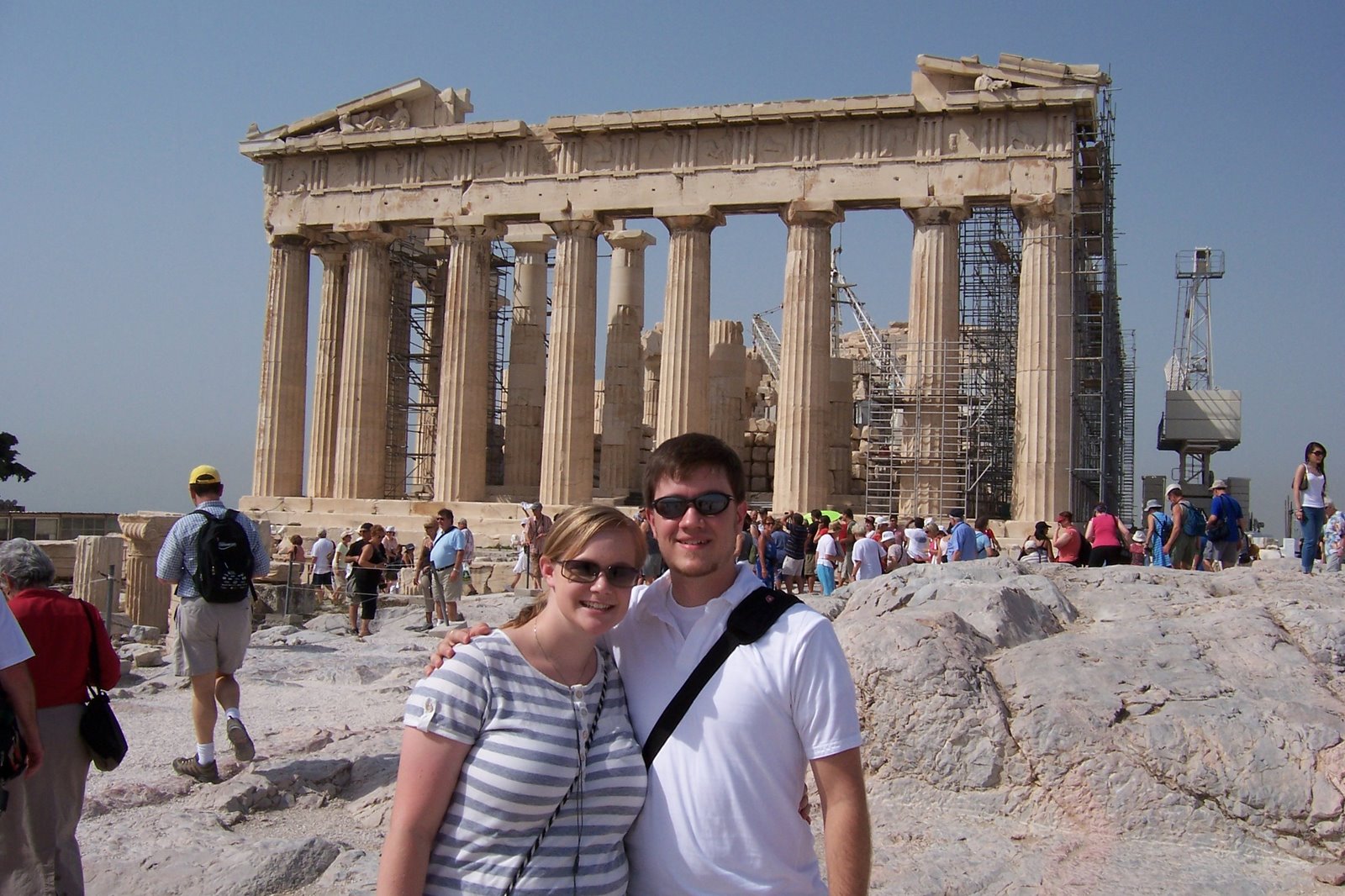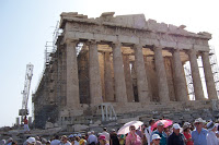 Yesterday, Sunday, we visited the Acropolis, which was the religious center of Athens. It is set on top of a hill right in the middle of the city. It is home to the Parthenon (the Temple of Athena), and the Erectheum (the Temple of Poseidon and Athena). There is also a smaller Temple of Athena Nike near the entrance.