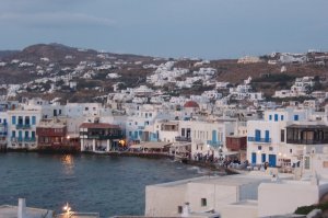 Mykonos Island: famous for its windmills, picturesque sunsets, whitewashed buildings, domed chapels, tourist shops, and store owners who give bad directions.