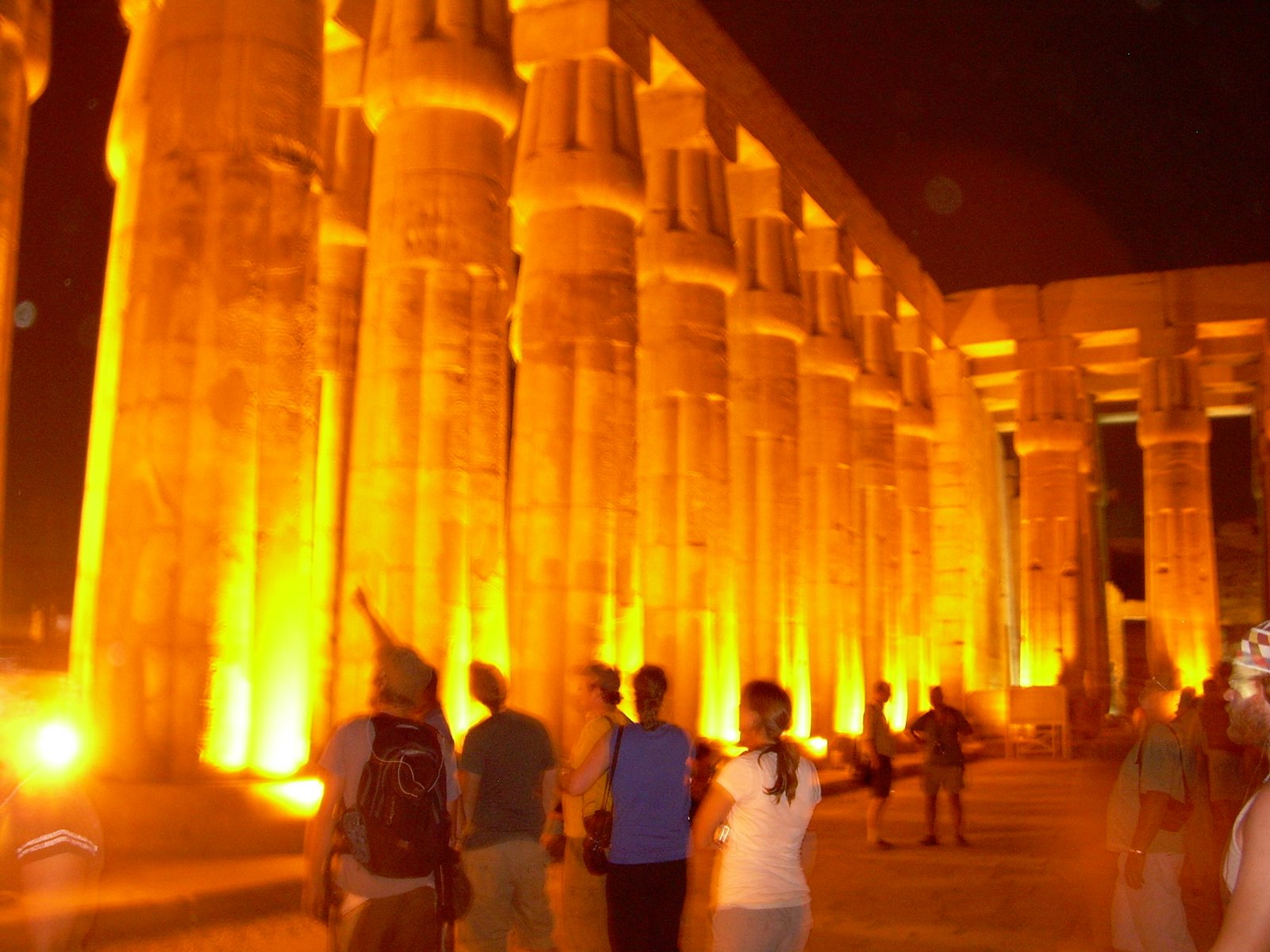 We visited the temple during at night when it was illuminated, and the yellow lights playing off the statues and columns with the clear night sky overhead was beautiful. In front of the temple are two gigantic statues of, who else?, Ramses II, followed by more gigantic statues of Ramses II and others inside the main courtyard area. All Egyptian temples are laid out in the same basic format: large front gates (called pylons) followed by an open courtyard where commoners would come and offer sacrifices and worship; then comes a half-open pillared/roofed section where only priests can enter; then comes a vestibule area reserved for the maintainence of the god (washing, feeding, etc.); then the holy of holies where the idol is kept. What makes the Temple at Luxor different is that beyond the first enclosed area for the priests comes another open courtyard area. This is where the royal family’s children would have come to receive an education, and this is where we know Moses spent most of his childhood. We were able to sit around the very place where Moses was and have a short singing devotional. For me, this was the climax of the entire trip. Everything had led up to this moment where we we sitting in the place Moses had sat some 3000+ years ago.