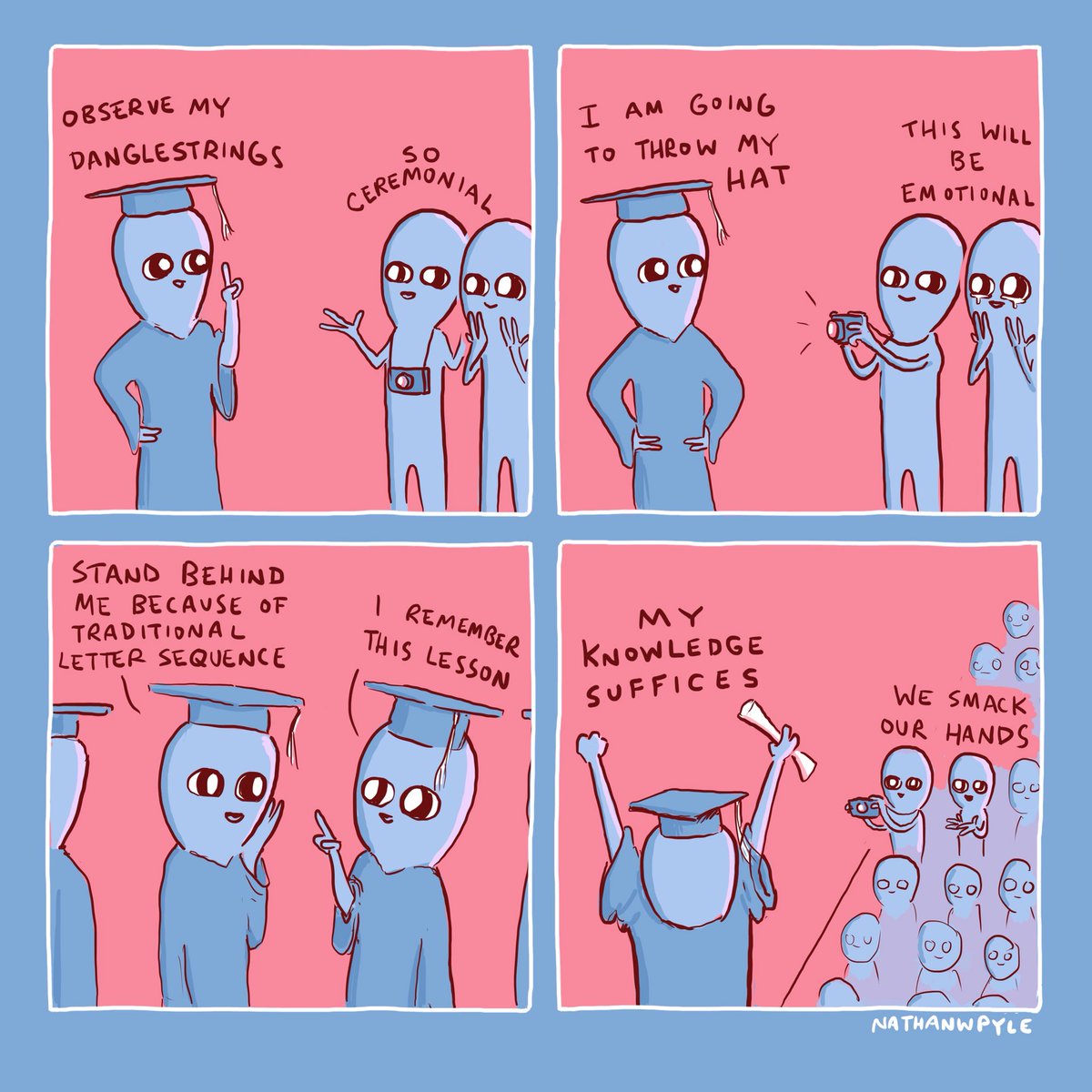Graduation is a time when authority figures publicly acknowledge our sufficiency. “My knowledge suffices!” We don’t often get that in life outside of school or sports. Maybe your boss will let you know you’re doing a good job. Maybe you’ll get that promotion or a pay raise. But when we’re out on our own, we don’t have the same level of feedback and/or course correction like we get in school.