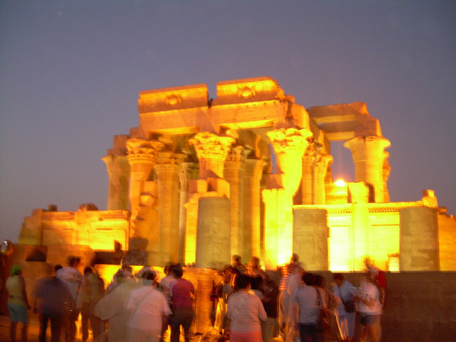 Our next stop was up the Nile a way. We arrived at the Kom-Ombo Temple complex as the sun was going down (about 5pm or so). Egyptian temples are beautiful at night when they are all lit up.